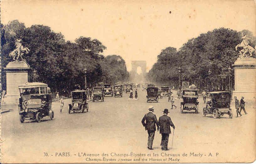Paris - L´Avenue des Champs-Elysées et les Chevaux de Marly